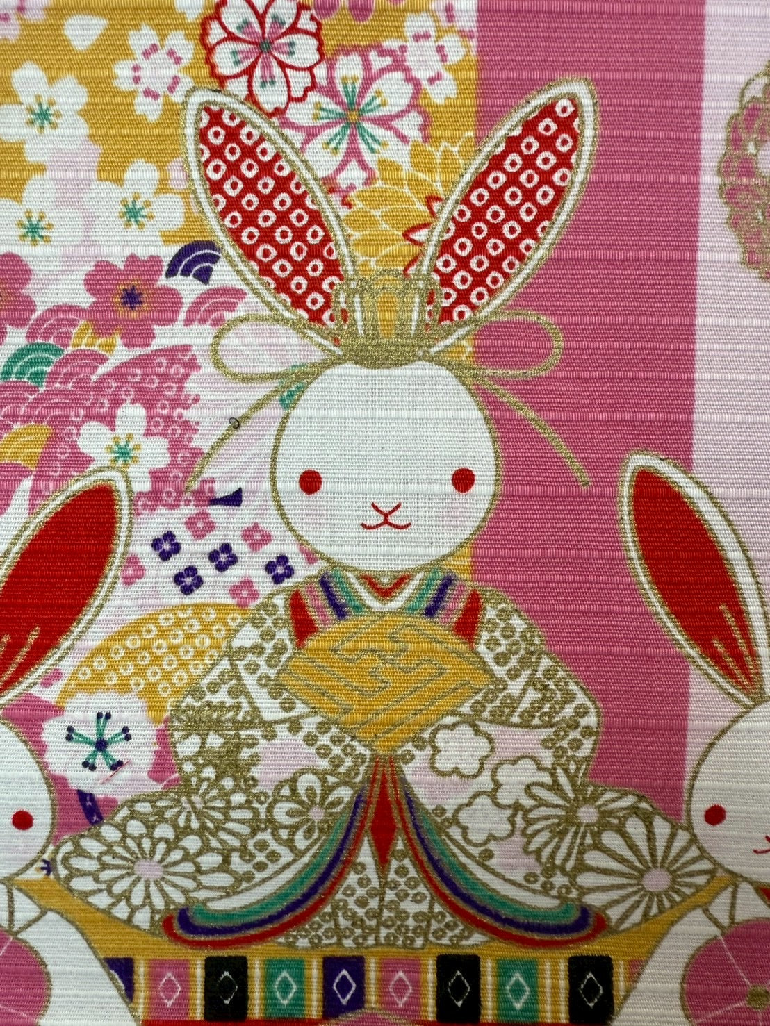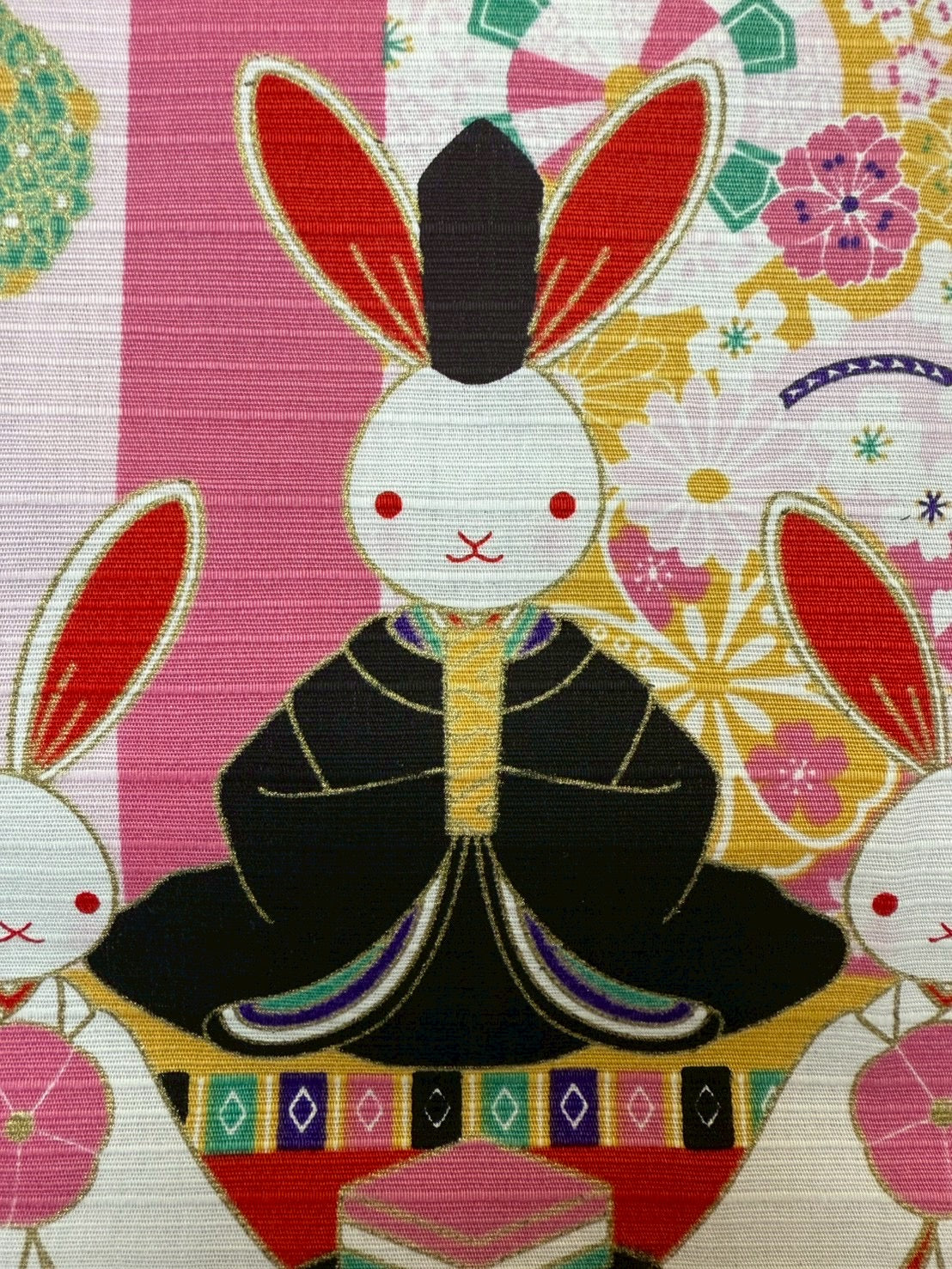 愛らしいうさぎをお雛様に見立てた、心和むデザインの風呂敷です。ふっくらとした表情のうさぎ雛が並ぶ姿は、ひな祭りの華やかさに、やさしい可憐さを添えてくれます。うさぎは「跳ねる」「飛躍する」ことから、縁起の良い動物として親しまれ、成長や幸せを願う気持ちを象徴するモチーフでもあります。