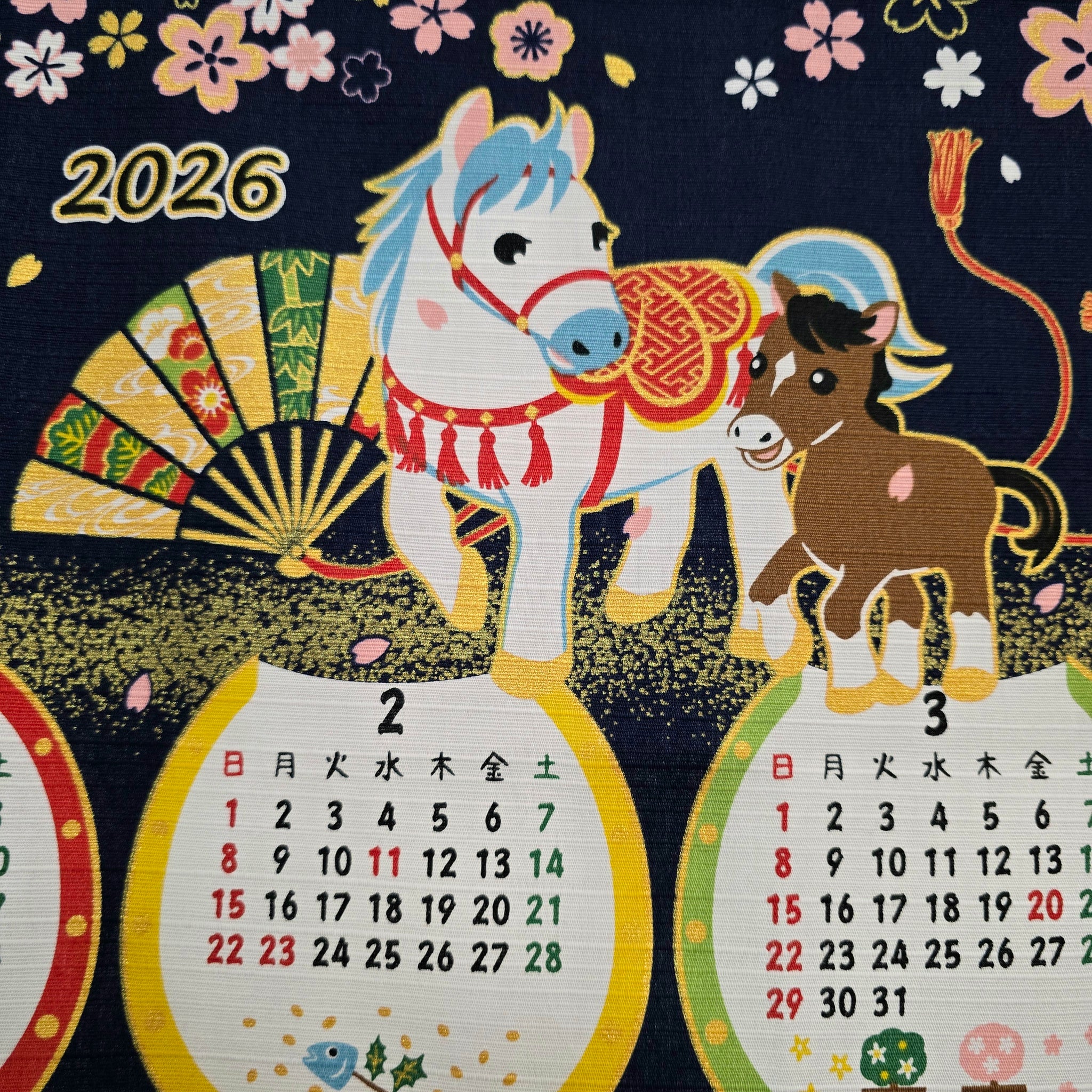 『馬蹄柄 (ばていがら)』は古くから【幸運を招く】【魔除け】のモチーフとして知られています。縁起の良いモチーフをあしらった小風呂敷カレンダーは大切な方への贈り物にもおすすめです。